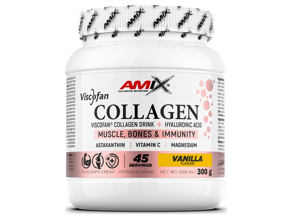 Vanilka: Peptidy hovězího kolagenu Viscofan®, bisglycinát hořečnatý (hořčík), hyaluronát sodný (kyselina hyaluronová), aromata, sůl, sladidla: erythritol a steviol-glykosidy, sukralóza, acesulfam-K; odpěňovač: oxid křemičitý; kyselina L-askorbová (vitamin C), barvivo: beta karoten; extrakt Haematococcus pluvialis 3% (Astaxanthin).