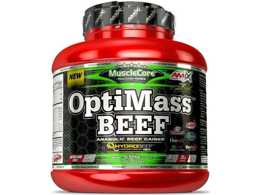 OptiMass™ Beef Gainer je vynikající produkt z řady gainerů vystavěný na značkovém hovězím proteinovém izolátu HydroBEEF a vysoce kvalitním sacharidovém matrixu. Tento produkt má velmi nízký obsah tuků a je absolutně bez laktózy.