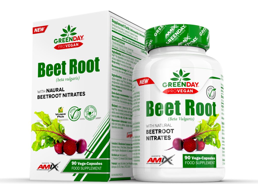 GreenDay® ProVegan Beet Root je doplněk stravy s obsahem extraktu z červené řepy s vysokým obsahem přirozených nitrátů. Nitráty jsou přirozenou součástí různých druhů zeleniny a nejvyšším obsahem disponují např. špenát, listový salát a červená řepa. Nitráty z červené řepy fungují jako vazodilatátor, který pomáhá roztahovat cévy a normalizovat hladinu krevního tlaku.