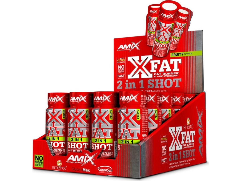 XFat 2in1 SHOT je vynikající spalovač tuku a předtréninkový doplněk stravy s obsahem glycerolu GlyceroMax, SINETROL XPUR, L-Karnitinu, CarnoSyn - beta alaninu a kofeinu.