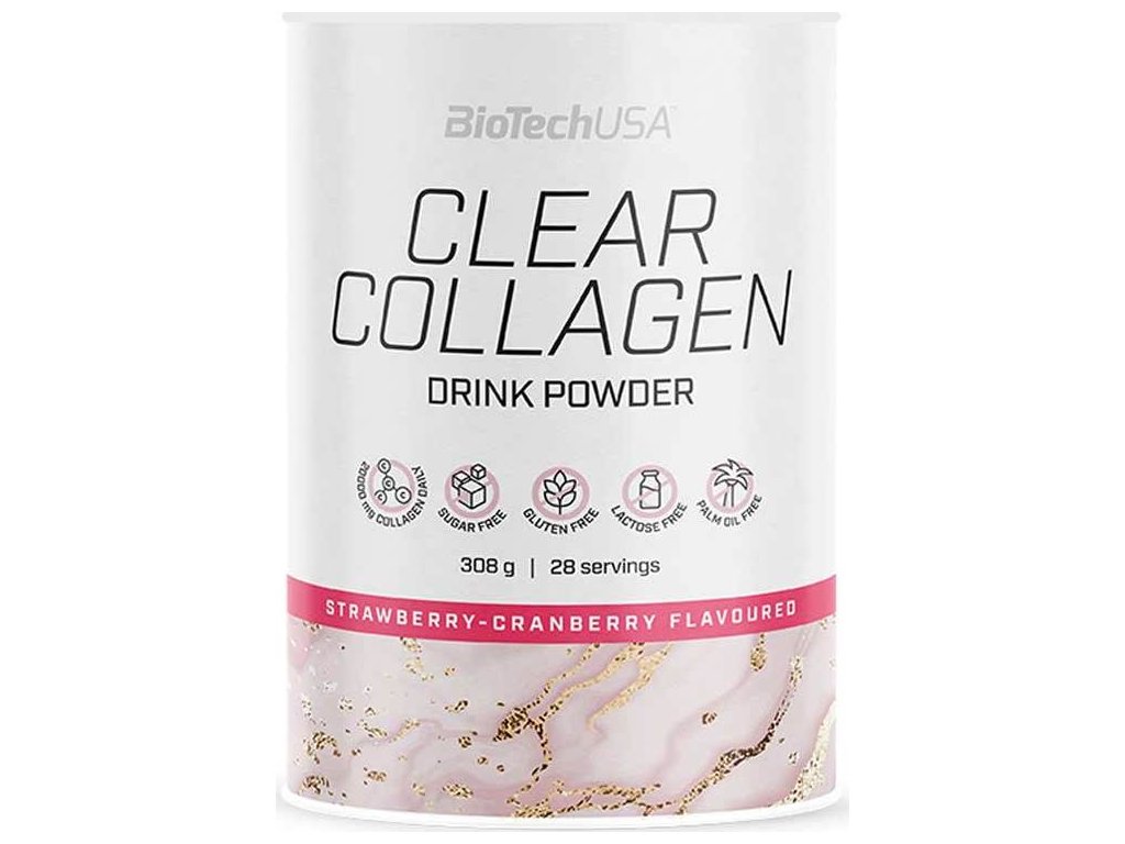 Produkt Clear Collagen obsahuje až 91 % hydrolizovaného kolagenu, díky čemuž jednou dávkou (22 g) prášku dodáme svému organismu až 20 g kolagenu denně ve formě osvěžujícího nápoje v prášku. Kolagen je klíčovou bílkovinou nacházející se ve vazivu a v pokožce. Kolagen vyrábí náš organismus, avšak postupem věku je vhodné podpořit jeho tvorbu z cizího zdroje, a to užíváním kvalitních kolagenových produktů.