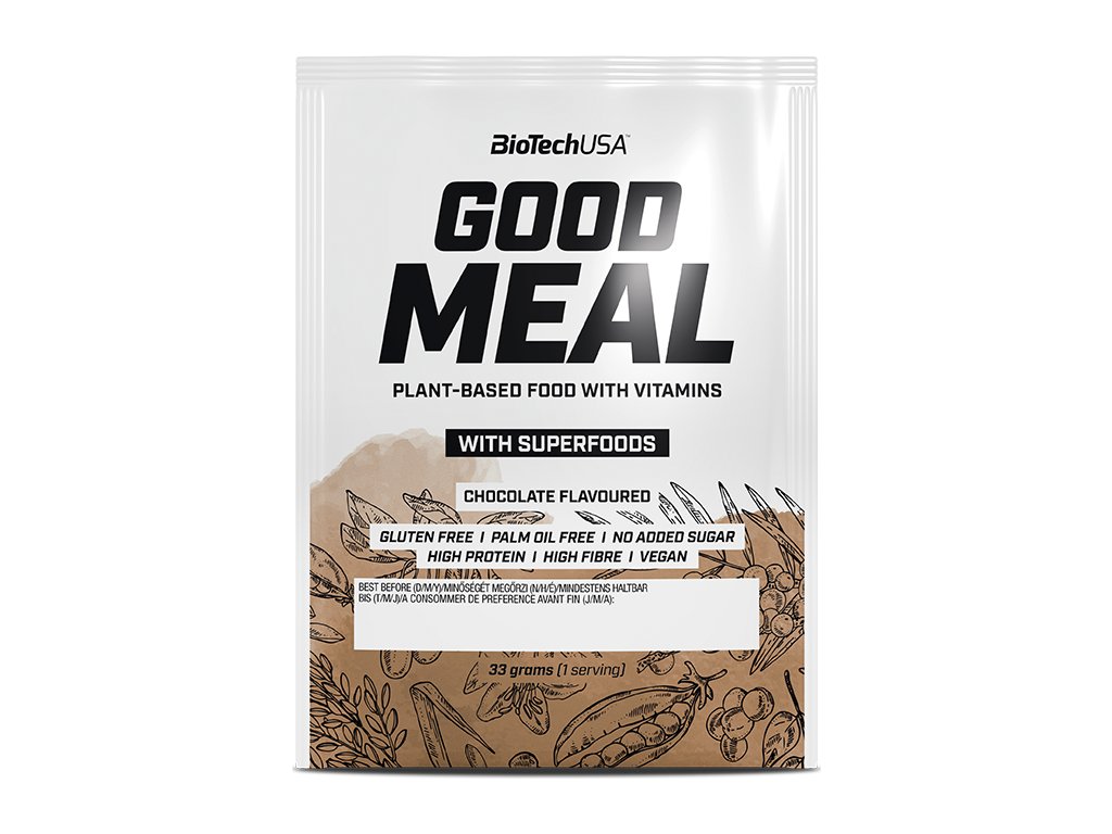 Jste neustále na cestách a máte celý den nabitý, ale přesto chcete mít vyváženou stravu? Vyzkoušejte Good Meal, ušetřete čas pro sebe a dodejte svému tělu kompletní živiny. Konzumujte ho v práci, na cestách, doma, po tréninku, při víkendových túrách, ráno, k obědu, k večeři, doslova kdekoli a kdykoli. Jeho obsah a nutriční hodnota je bohatší než jeho chuť v čokoládové i neochucené verzi.