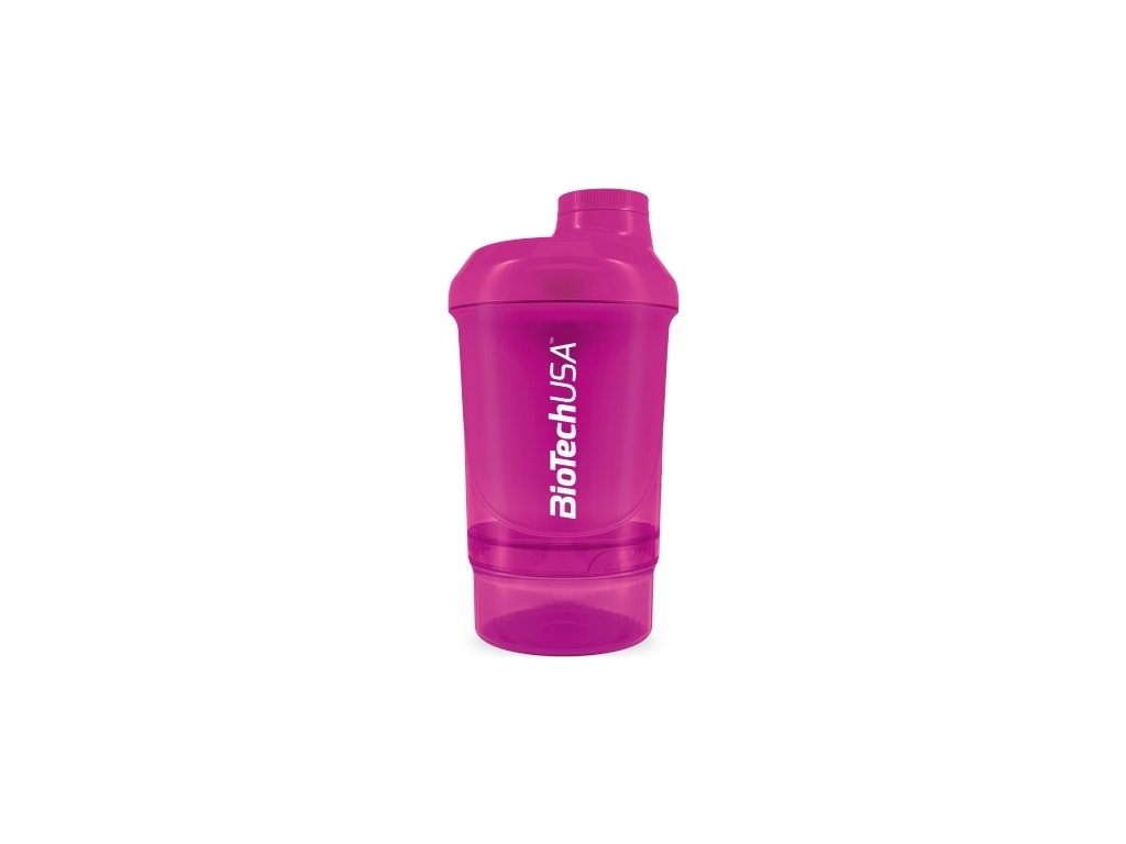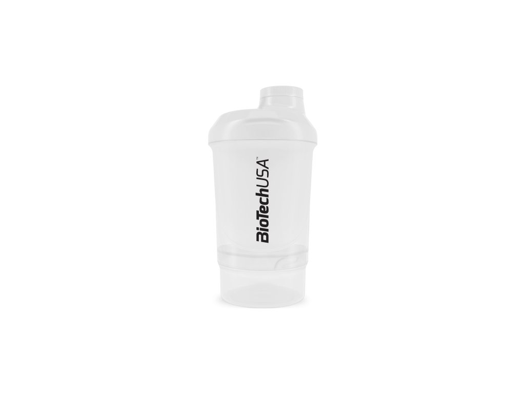 Šejkr Biotech 300 ml a zásobníkem o objemu 150 ml. Přidané sítko pro snadnější rozmíchání obsahu bez hrudek. Šroubovací malé víčko i velký uzávěr skvěle zabraňují úniku vody. Mnoho barevných provedení.shaker