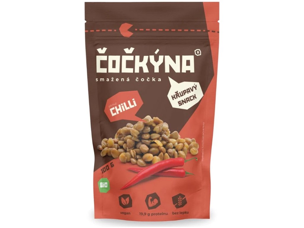 chilli: čočka (77 %), kokosový olej, koření (chilli, mořská sůl)