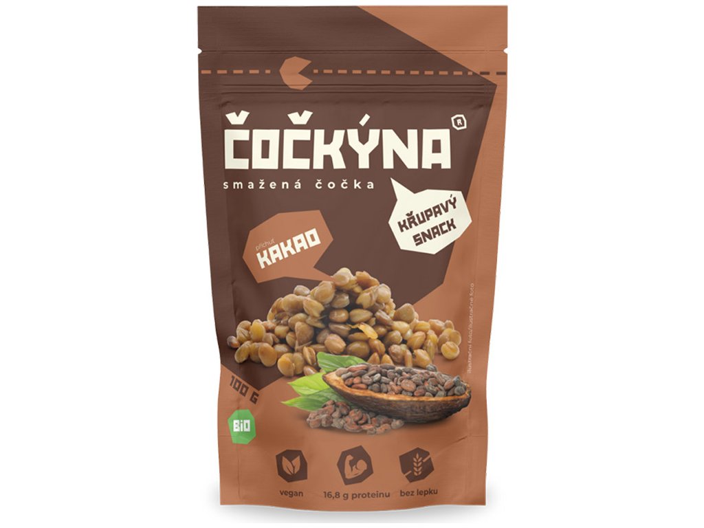 Kakao: čočka* (65 %), kokosový olej*, koření (třtinový cukr*, kakao*, mořská sůl).