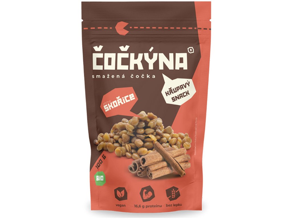 Skořice: čočka* (65 %), kokosový olej*, koření (třtinový cukr*, skořice*, mořská sůl).