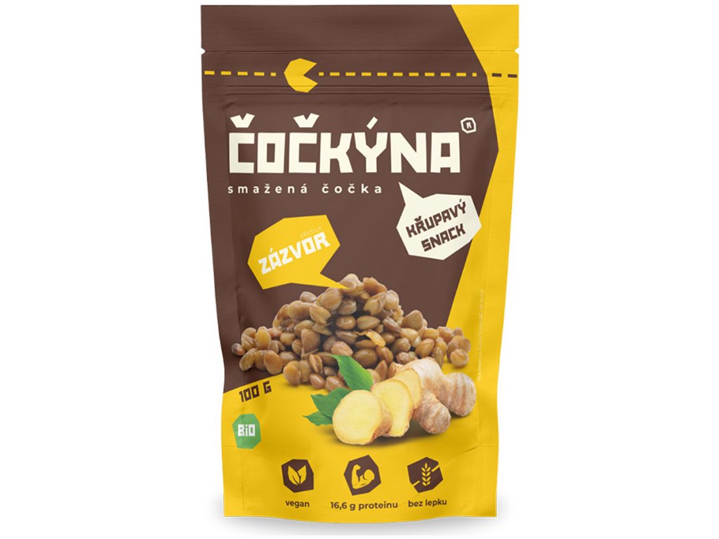 Zázvor: čočka* (65 %), kokosový olej*, koření (třtinový cukr*, zázvor*, mořská sůl).