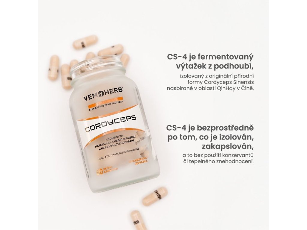 CS-4 je bezprostředně po tom, co je izolován, zakapslován, a to bez použití konzervantů či tepelného znehodnocení. Lepší produkt s obsahem Cordyceps Sinensis než je CS-4 prostě nenajdete!