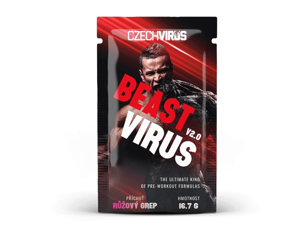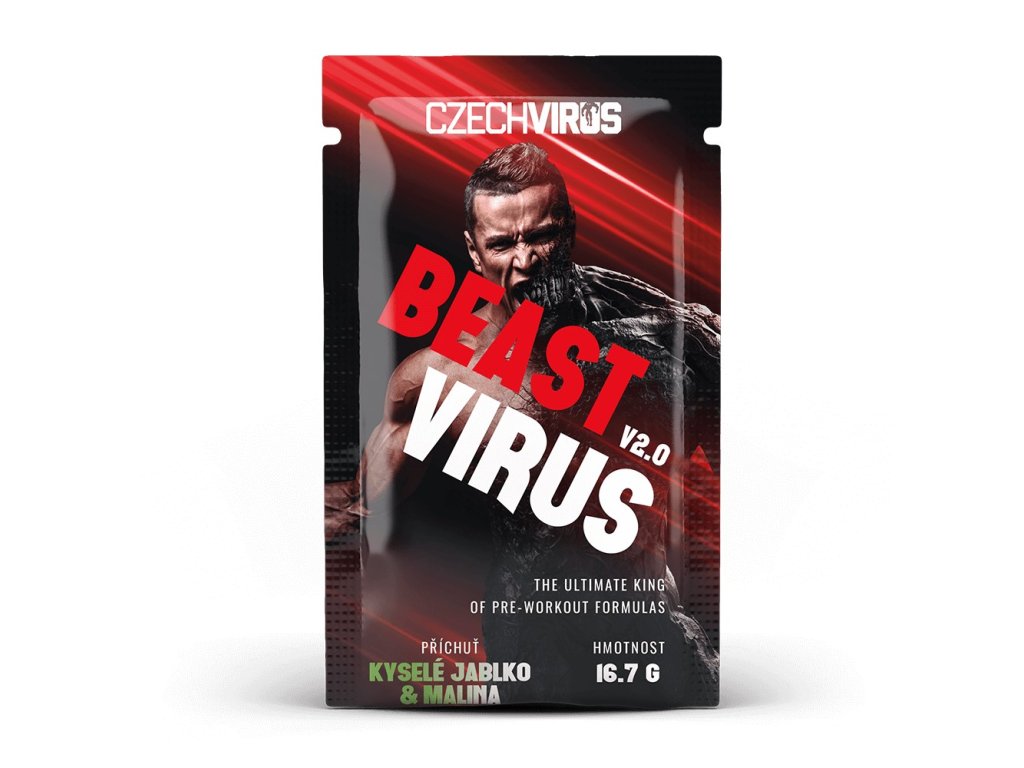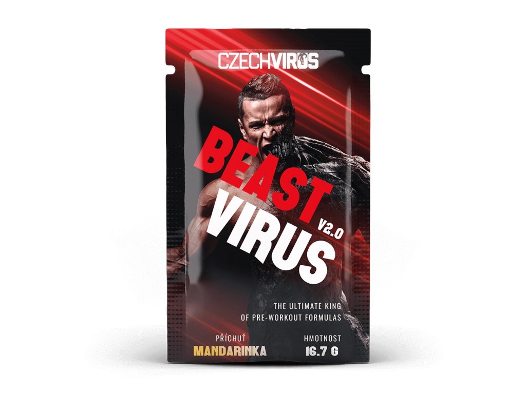 Beast Virus® V2.0. je horkou novinkou z dílny nejoriginálnější české značky Czech Virus®. Původní Beast Virus pravděpodobně není potřeba ani představovat, tento produkt způsobil naprosto bez debat revoluci v kategorii před tréninkovek a udával trendy ostatním značkám, které Beast velmi rády napodobovaly. Doba jde však stále kupředu a proto jsme se po 5-ti letech rozhodli naši originální recepturu inovovat a přinést na český trh zpět krále českých před tréninkovek. Nic jsme neubírali, pouze jsme přidali 4 nové látky = 13 aktivních látek celkem!