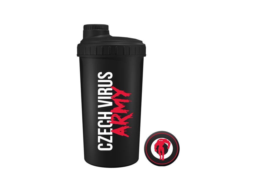 Klasický shaker se šroubovatelným uzávěrem, který zajistí tekutinu před protečením. Krásný design a skvělé rozmíchané suplementy. Kompletně rozebíratelný pro výborné vyčištění. Na obou stranách potisk "Czech Virus Army". Měřící stupnice uvedena na straně shakeru.