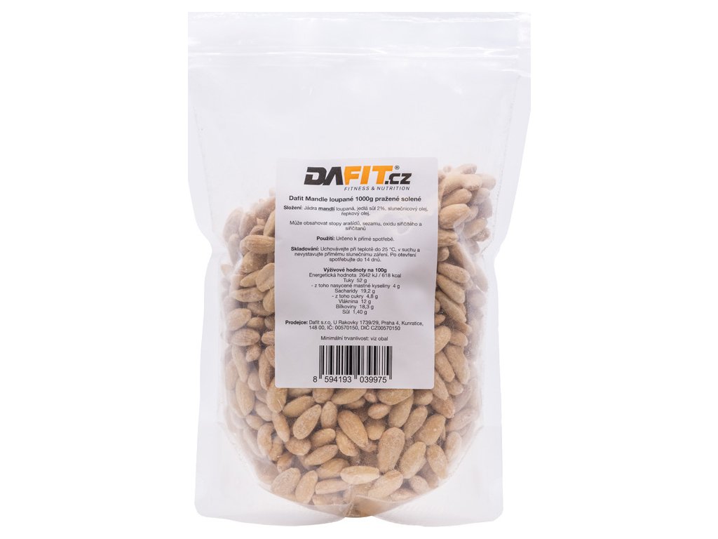 Jádra mandlí loupaná, jedlá sůl 2 %, slunečnicový olej, řepkový olej.