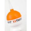 Oranžové šroubovací víčko s bílým posuvným náústkem či hubicí. Láhev je bílé barvy, na sobě má loga Extrifit a nápisy produktů v oranžovo-bílém provedení.