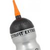 Oranžové šroubovací víčko s černým posuvným náústkem či hubicí. Láhev je černé barvy, na sobě má loga Extrifit a nápisy produktů v oranžovo-bílém provedení.