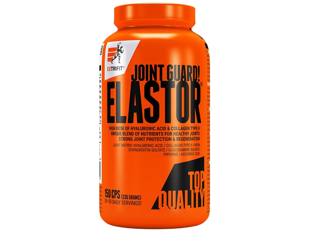 Extrémně silný prostředek pro zatěžované a namáhané klouby, až 10x silnější než jiné kloubní produkty. Elastor je unikátní produkt určený pro Vaše klouby. Je určen přednostně pro intenzivně cvičící sportovce, kteří potřebují zajistit dostatečnou ochranu svým zatěžovaným kloubům a současně je mimořádně silným produktem i pro běžnou populaci. Elastor obsahuje nejvyšší množství chondroprotektiv na současném trhu!