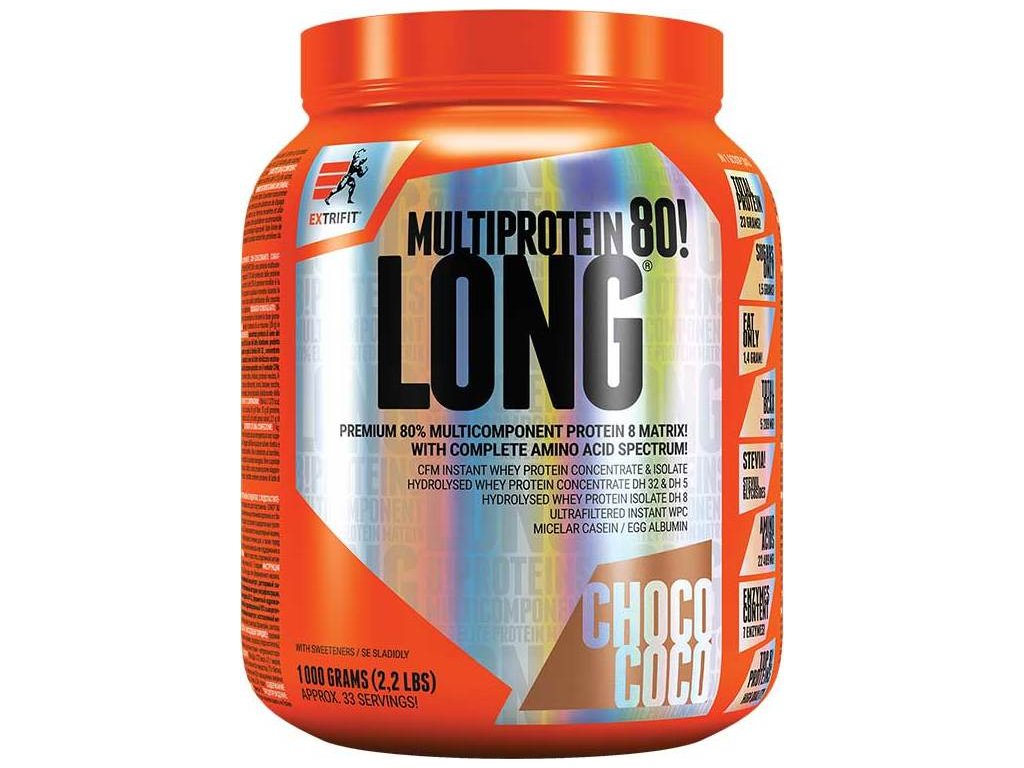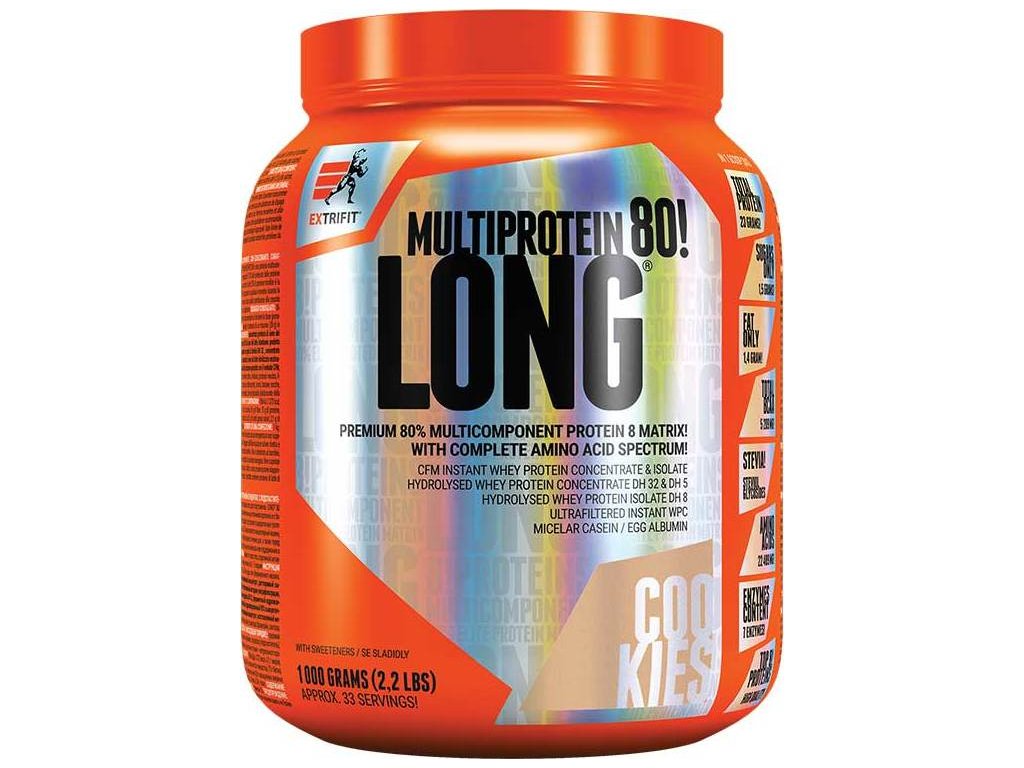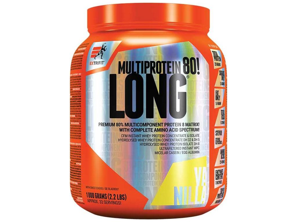 Hlavní předností multikomponentního proteinu Long® 80 Multiprotein je jeho postupnější uvolňování, než je tomu u klasického syrovátkového proteinu, a výrobek tak může zásobovat svaly bílkovinami po delší čas! Navíc je obohacen komplexem sedmi enzymů – papainem, alfa amylázou, bromelainem, laktázou, celulázou, neutrální proteázou a lipázou. Obsah proteinů je 76 %.