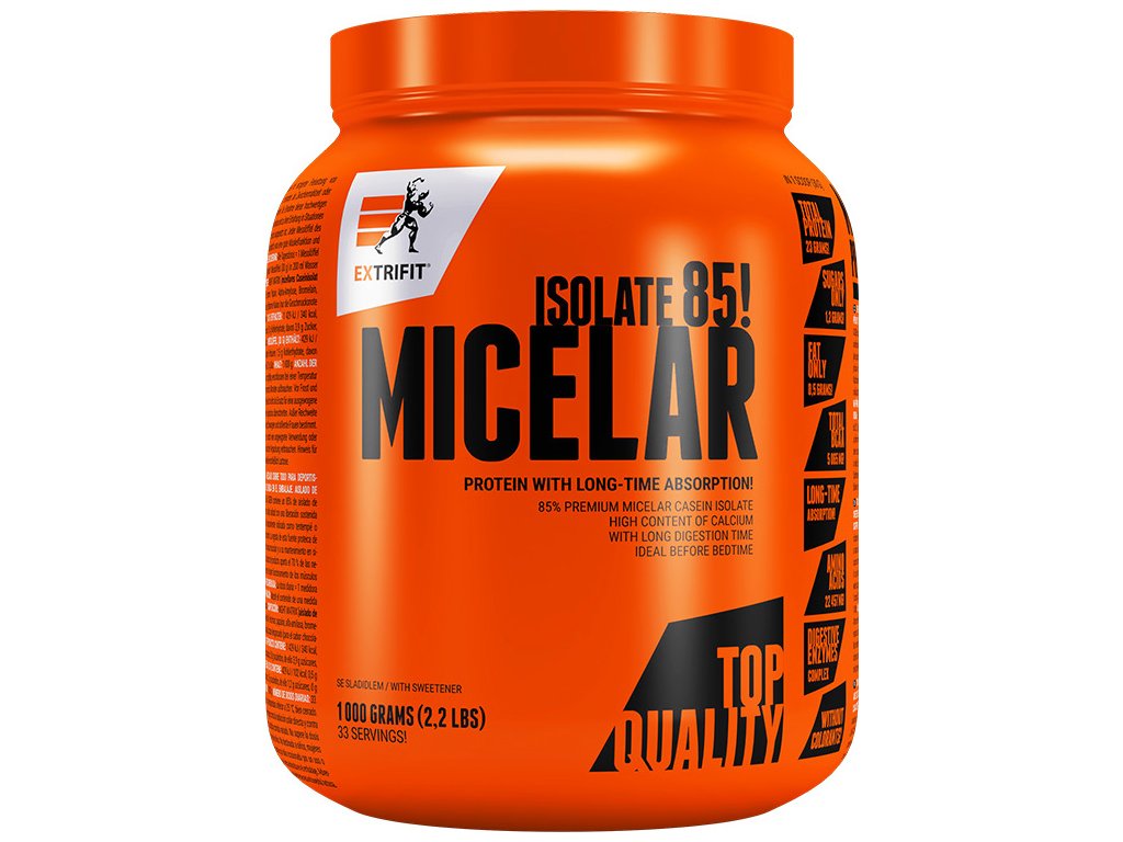 Micelar Casein obsahuje micelární kasein se sladidlem z rostliny stévie a přidanými sedmi trávicími enzymy pro dokonalé využití proteinu. Micelar Casein je kvalitní zdroj bílkovin s dlouhodobým uvolňováním aminokyselin. Konzumace produktu Micelar Casein je vhodná, když předpokládáte, že nebudete mít možnost se několik hodin najíst, např. ve škole, při zkouškách, na cestách a především před spánkem.