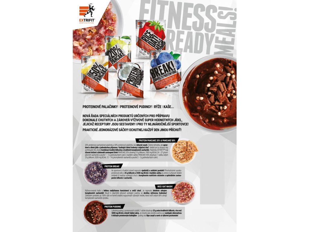 Naprosto dokonalé komplexní jídlo se zastoupením 27,8 g whey proteinu ve 100 g a všech zásadních nutričních složek pro svalový růst! Chuťový zážitek Vás ohromí. Opravdu vynikající. Žádné vaření - vše za studena. Příprava 1 - 2 minuty! Extrifit (R) přichází s úplně novou řadou produktů. Jedná se o speciální produkty určené pro přípravu dokonale chutných a zároveň výživově super hodnotných jídel, jejichž receptury jsou sestaveny i pro ty nejnáročnější sportovce.