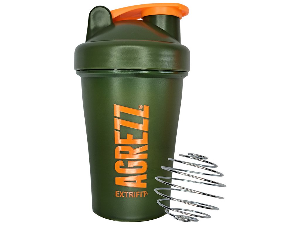 Šejkr Extrifit o objemu 400 ml, štíhlý, směrem ke dnu se zužuje. Po stranách jsou protiskluzové tvarované části, takže se šejkr dobře drží. Vzadu najdete rysky v ml/oz pro odměření a průhled pro vizuální kontrolu náplně. Šejkr obsahuje pružinovou kuličku pro lepší rozmíchání nápoje. Nádoba je matná, jemně průsvitná, bok se stupnicí průhledný.