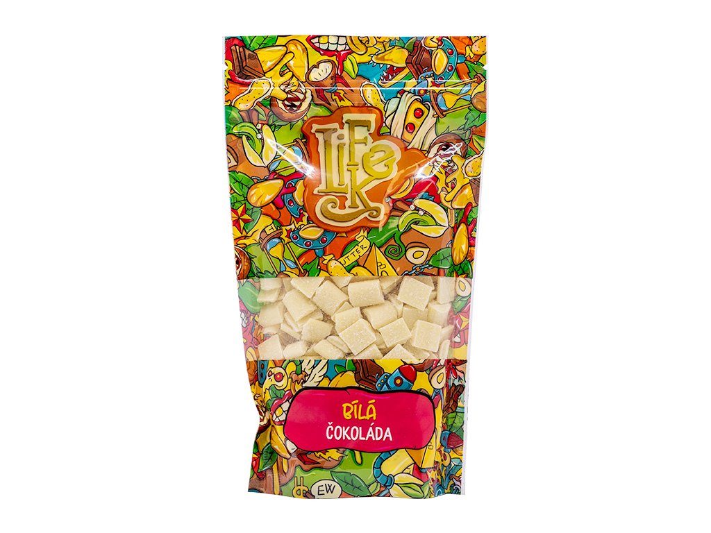 Kvalitní belgická bílá čokoláda je cukrovinka založení na kakaovém másle, mléce a cukru s jemným podtónem vanilky. Skvěle se hodí při vaření a pečení – krásně se rozpouští a má přirozenou chuť. Obsah kakaové sušiny je nejméně 29 %.