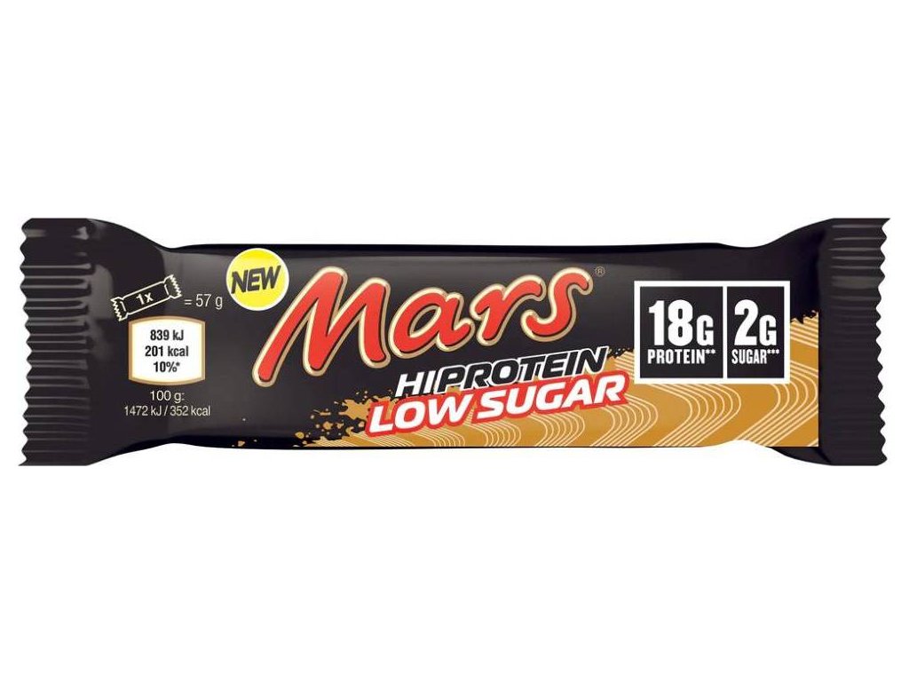MARS HiProtein Low Sugar Bar je nová tyčinka naplněna lahodnou vrstvou nugátu, přelitá silnou vrstvou karamelu a pokrytá mléčnou čokoládou, navíc s nízkým obsahem cukru.