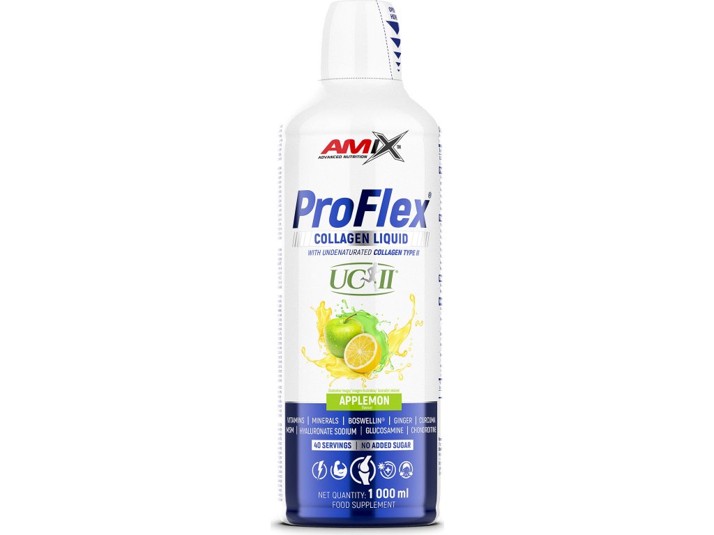 Amix™ ProFlex® Collagen liquid je koncentrát pro přípravu chutného nápoje plného vitamínů, minerálních látek, bylinného komplexu a komplexu účinných látek obsahující kolagenní hydrolyzáty - zejména UC-II® nedenaturovaný kolagen typu II, glukosamin sulfát, MSM, chondroitin sulfát, hyaluronát sodný a glycin.