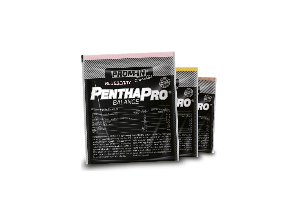 borůvková příchuť: směs bílkovin pentha pro® (syrovátkový proteinový koncentrát zpracovaný metodou cfm (mléko, emulgátor: sójový lecitin), micelární kasein (mléko), sušený vaječný albumin, enzymatickou hydrolýzou upravený syrovátkový protein (mléko), syrovátkový proteinový isolát zpracovaný metodou cfm (mléko, emulgátor: sójový lecitin)), přírodní aroma, enzymy: laktáza, bromelain, papain, barvivo: koncentrát červené řepy, sladidlo: sukralóza