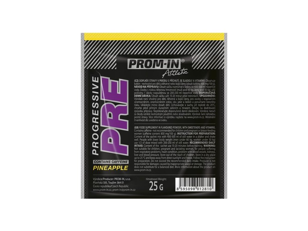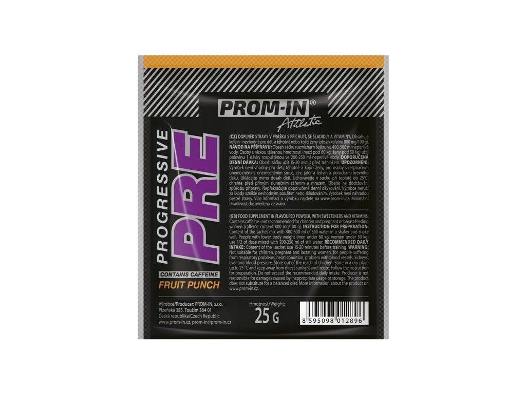 Progressive PRE představuje kombinaci ingrediencí užívaných před tréninkem. Doplněk stravy v prášku s příchutí, se sladidly a vitamíny.