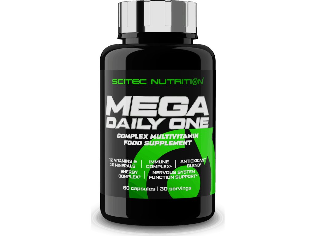 Mega Daily One je naší rozvinutou multivitaminovou a minerální formulí, obsahující 25 účinných látek. Obsahuje vysokou dávku vitamínového B-komplexu a vitamínu C, také životu nezbytné minerální látky, mezi nimi hořčík, selen a zinek.