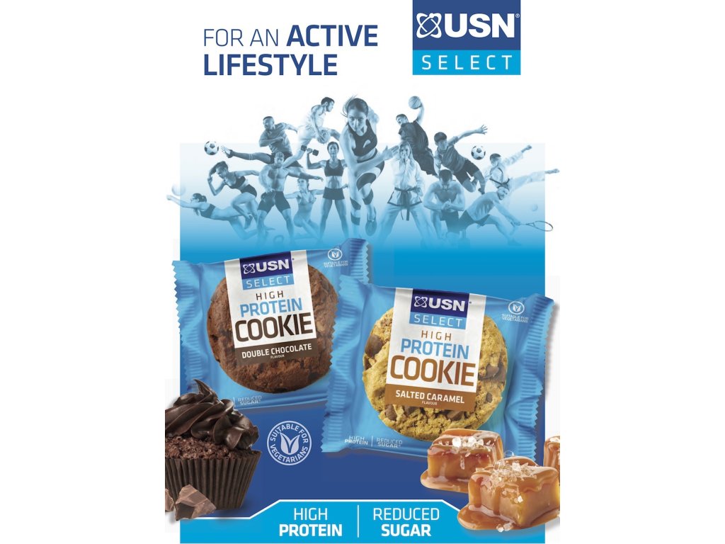 Protein Cookie vytvořili nutriční specialisté USN, je to vysokoproteinová sušenka s redukovaným obsahem cukrů. Snažíte se redukovat svoji hmotnost a být silnější, ale stále máte chuť na něco sladkého? Už se nemusíte bát Vaši chuť zahnat. Tyto sušenky jsou vhodnou kvalitní a lahodnou svačinou nejen na cesty. Jedna sušenka obsahuje 14 g bílkovin. Díky svému složení je vhodná i pro vegetariány.