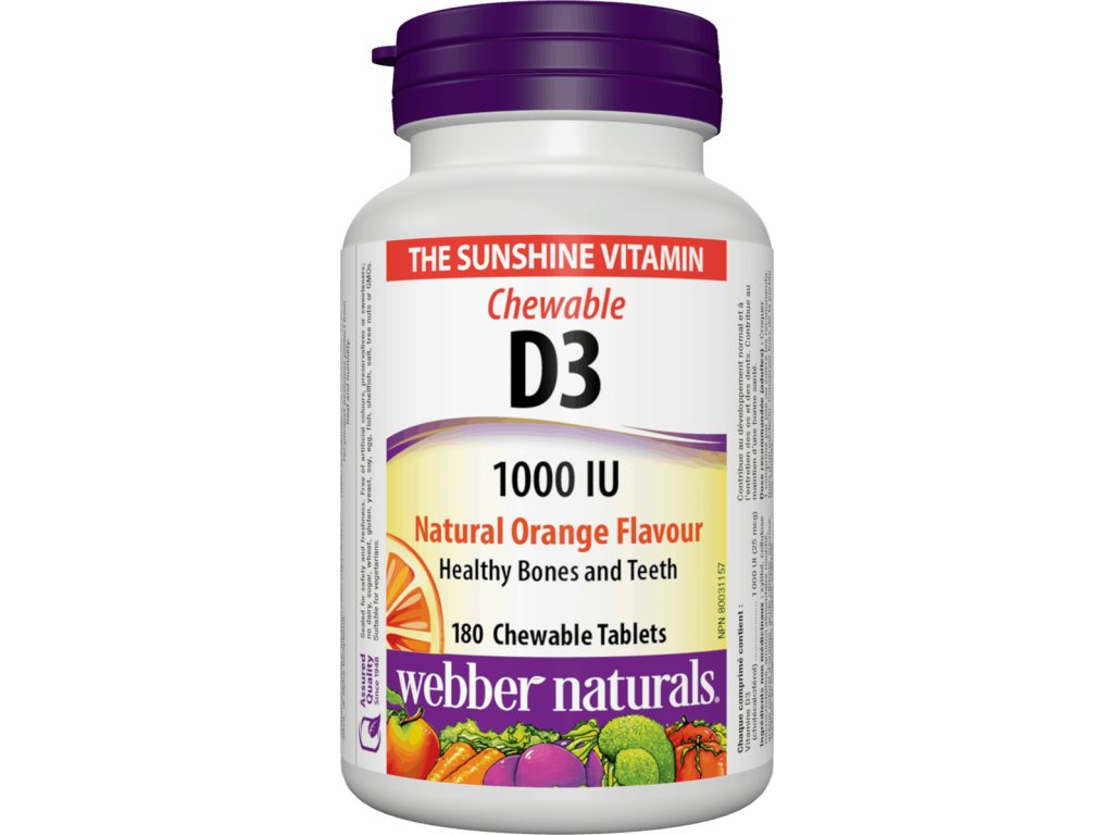 WEBBER NATURALS D3 1000 IU 180 ŽVÝKACÍCH TABLET - POMERANČ